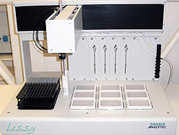 Il LISSY è un sistema robotica di gestione campioni compatto e ad alta precisione, in grado di automatizzare tutti i passaggi di gestione liquidi. Il LISSY utilizza un braccio robotica in grado di muoversi sugli assi XYZ che monta 4 aghi indipendenti che possono dispensare o aspirare in diverse tipologie di tubi, vials, micropiastre etc. posizionati sulla piattaforma.